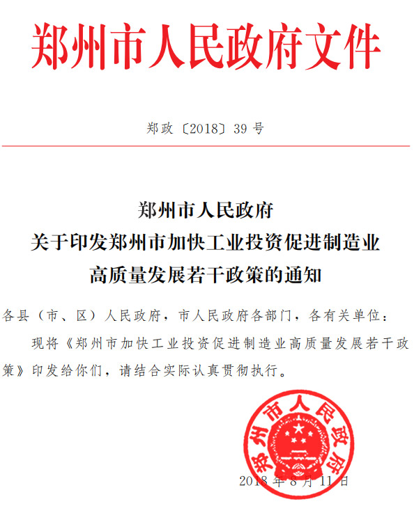 政府在不斷督導(dǎo)企業(yè)進(jìn)行改造升級(jí)的過程,也在不斷為企業(yè)考慮,出臺(tái)補(bǔ)貼政策。8月份,鄭州市出臺(tái)了加快工業(yè)投資促進(jìn)制造業(yè)高質(zhì)量發(fā)展若干政策